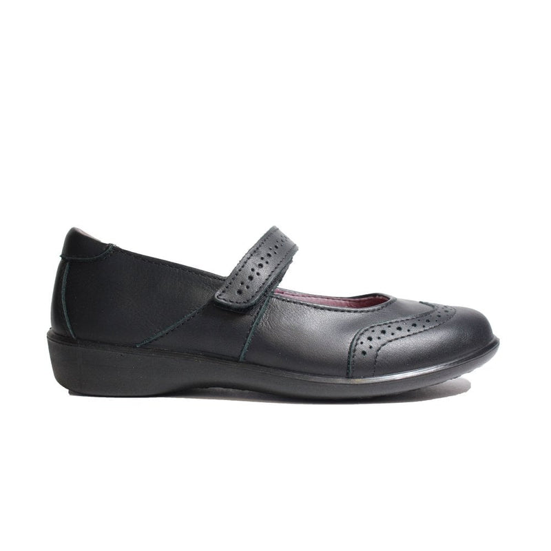 Ricosta Becky is a school shoe with rip tape fastening and a pu sole unit which is tough and strong but also flexible and lightweight. Finished with brogue punch detailing, leather linings that help feet breathe naturally.