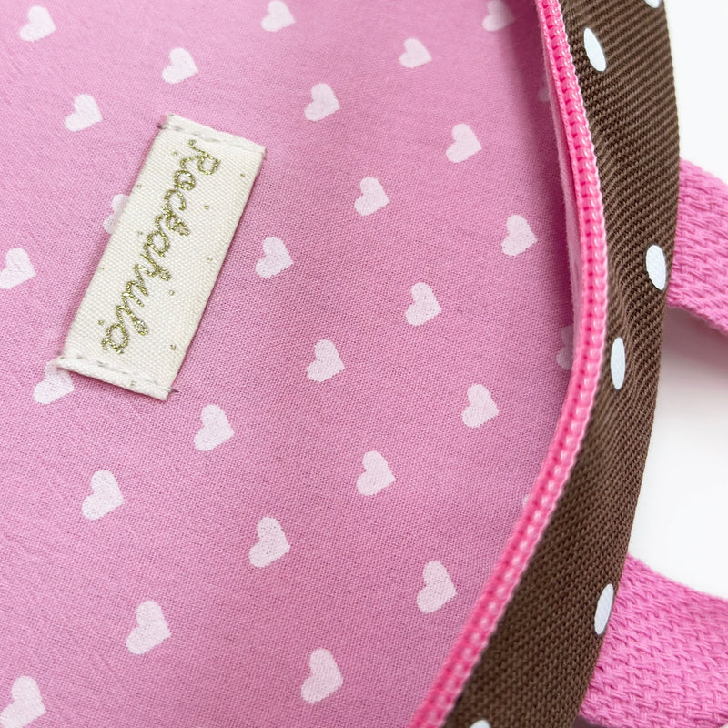 Get out and about in colourful style with our fun rainbow rucksack! In a gorgeous brown spotted fabric, with a bright rainbow, this rucksack is fully lined in our sweet heart print and features a carry handle, a front pocket, bottle netting and adjustable straps.