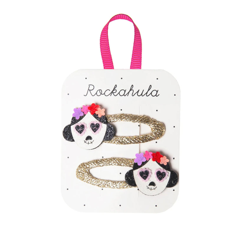 Sing and dance this Halloween in these Dia De Los Muertos hair clips!  The perfect accessory for spooky celebrations, these sparkly clips feature the cutest sugar skulls, adorned with a colourful crown of flowers.