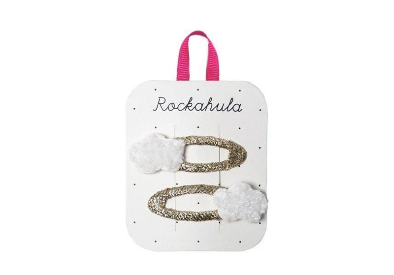 • The cutest little fluffy cloud hair clips with a sparkly gold body.