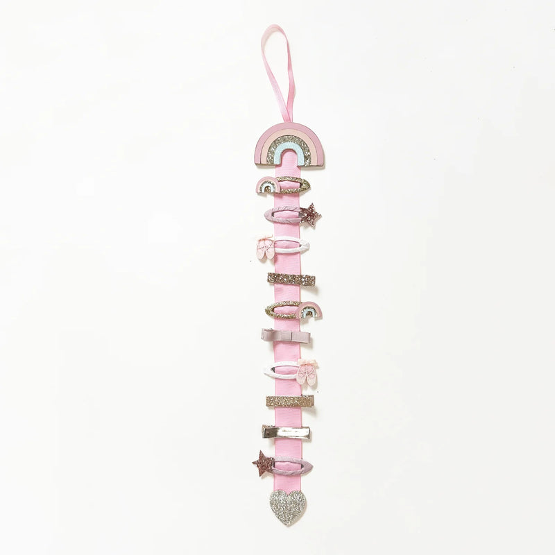The perfect solution to storing and organising hair clips in one place - our clip hanger has a hanging loop that can be hung on a door or wall hook.  Simply snap on your clips ready to wear again next time! Our rainy cloud hanger can fit around 12 clips (depending on clip size) and hangs perfectly on a grosgrain ribbon!
