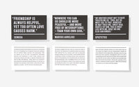 They can either be read individually or as a continuous essay. Once contemplated, the cards can then be kept or displayed somewhere close at hand as a continual reminder of stoic wisdom.