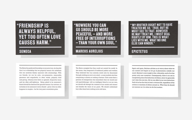 These cards are designed to introduce us to the philosophy of Stoicism and its relevance to our day to day lives.
