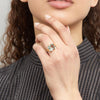 The Claw ring is a new addition to our popular chunky ring family. Formed of eight thick stems coming through from behind the ring and holding the square stone, this is a stunning ring that can be worn by itsself or stacked.