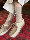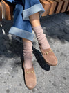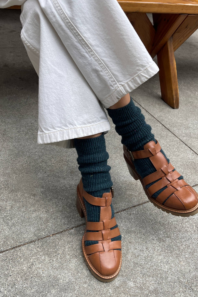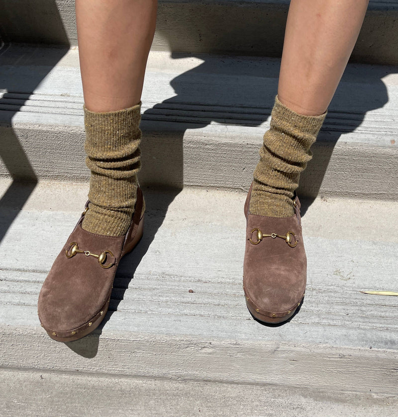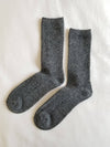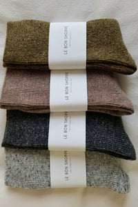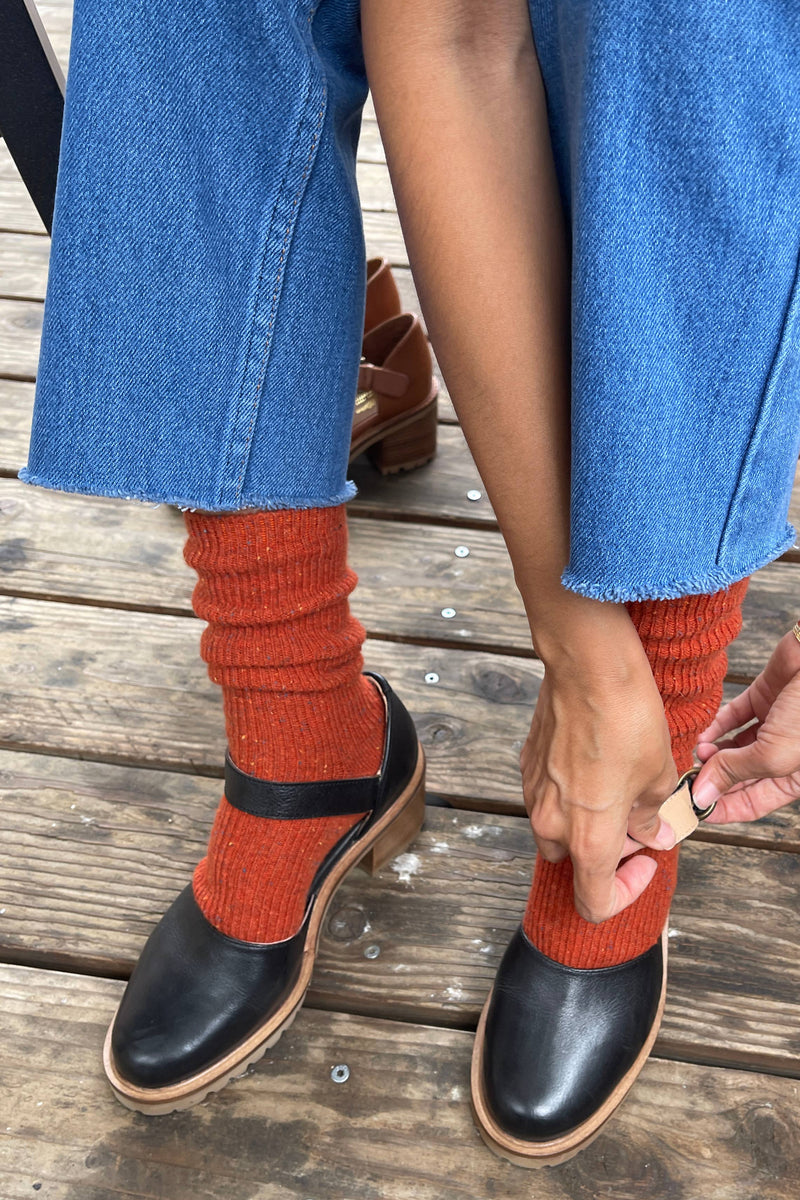 A simple wool blended winter sock to keep your toes warm is essential in the colder months. Snow Socks have a charming speckled look and calf length coverage. They can be doubled for extra warmth and will carry your feet through the season with elegance.