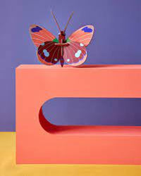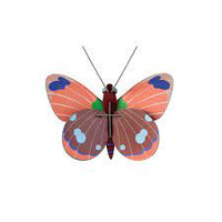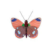 The Studio Roof Delias Butterfly is a small flat-packed decorative model made from recycled cardboard. The recycled cardboard is treated with vegetable dyes to give it a bright multicoloured and eco-friendly finish. This Delias Butterfly has a mix of pink, blue, green and brown, which really make the model pop and brings the creature to life!
