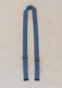Recycled Wool Picnic Blanket - Wildflower Patchwork check - Navy Recycled Handle