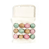 INGREDIENTS: WHITE & GREEN EGGS: sugar, Ecuador cocoa mass, praline 15% (HAZELNUTS, sugar), cocoa butter, whole MILK powder, LACTOSE, concentrated butter (MILK), coating agents, (gum arabic, Carnauba wax, beeswax, shellac), starches, cocoa powder, emulsifier: SOYA lecithin, glucose syrup, colouring ingredients (spirulina, apple and safflower concentrate, and malted BARLEY extract), salt, natural vanilla flavouring, colouring: E160a. BROWN & BLUE EGGS: sugar, cocoa mass, caramel 12% (sugar, water, dextrose), whole MILK powder, cocoa butter, concentrated butter (MILK), glucose syrup, coating agents (gum arabic, Carnauba wax, beeswax, shellac), starches, emulsifier: SOYA lecithin, colouring foodstuffs (spirulina, apple, safflower, lemon, sweet potato and radish concentrates, malted BARLEY extract), "fleur de sel" salt, natural vanilla flavouring. Milk chocolate contains 30% cocoa min, 19% milk min. Dark chocolate contains 52% cocoa.