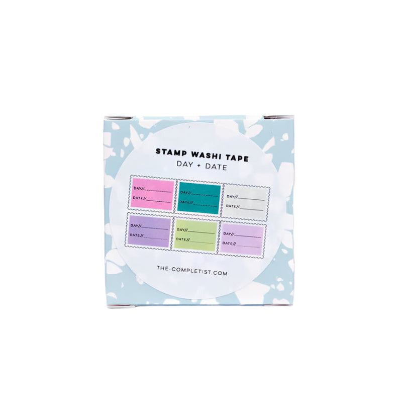 Is this the coolest washi tape ever? We think so. It comes packed in a cardboard box (plastic free!) It's 25mm wide and 5 metres long. It's perforated so each piece can be pulled off, just like real stamps!