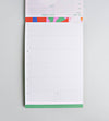 This A5 size (14.8cm x 21cm) pad has approx. 50 pages, has a wrap around cover and is printed on FSC certified paper using vegetable inks and has recycled cardboard backing. The pages are 115gsm and the cover is 300gsm, and each page features a weekly planner page on the reverse so you can make the most of your pad. Made in the UK.