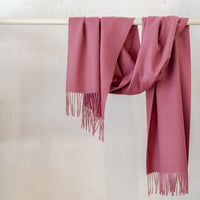 This TBCo blanket scarf with fringe is woven from soft lambswool.