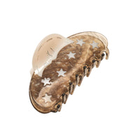 Each hair claw is made of individually cut acetate pieces and also hand-painted, which may cause some minor variation. Made from cellulose acetate.